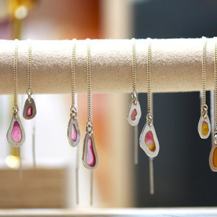Using the ancient fine jewellery technique of vitreous enamel, Louisa’s range of threader earrings are the perfect Modern Jewels. The windows of glass enamel are carefully applied to elegant wing shapes through a process of hand application and kiln firing. Inspired by colour found in the natural world, vibrant and striking or delicate and subtle, each piece is as exceptional as you, by nature.